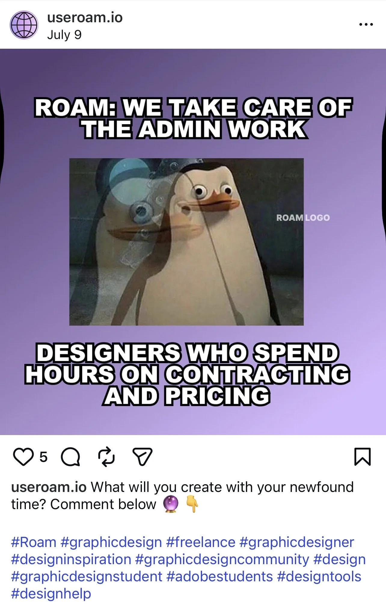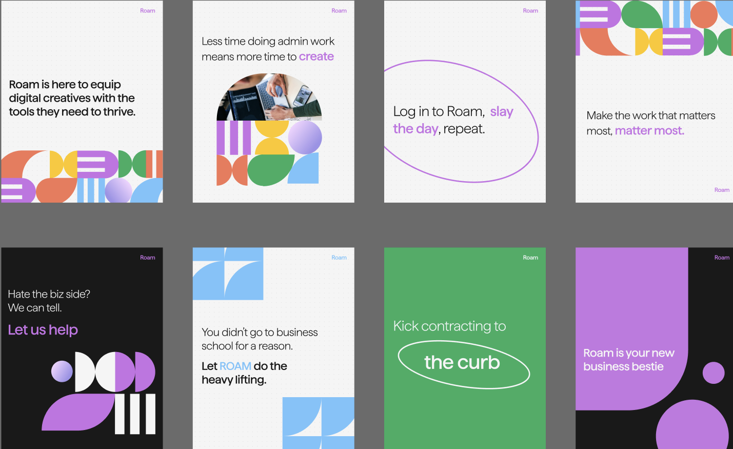 To introduce Roam to a market of graphic designers tired of doing administrative work, we discovered the relatable, there-for-you voice of Roam and created a multi-platform social campaign. REAL CLIENT